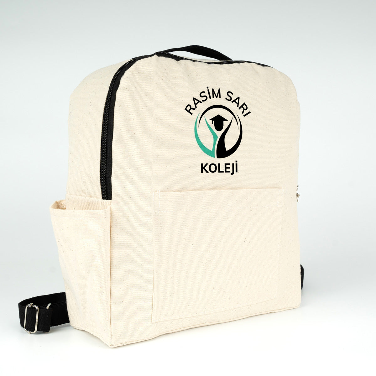 Siyah VIP Kanvas Sırt Çantası - Ön ve Yan Cepli (Özelleştirilebilir)