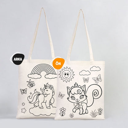 Yıkanabilir Eğlence Seti - 5 Adet Çift Yön Boyanabilir Çanta / 1 Adet Boyanabilir Kalemlik / 1 Adet 12'li Keçeli Kalem