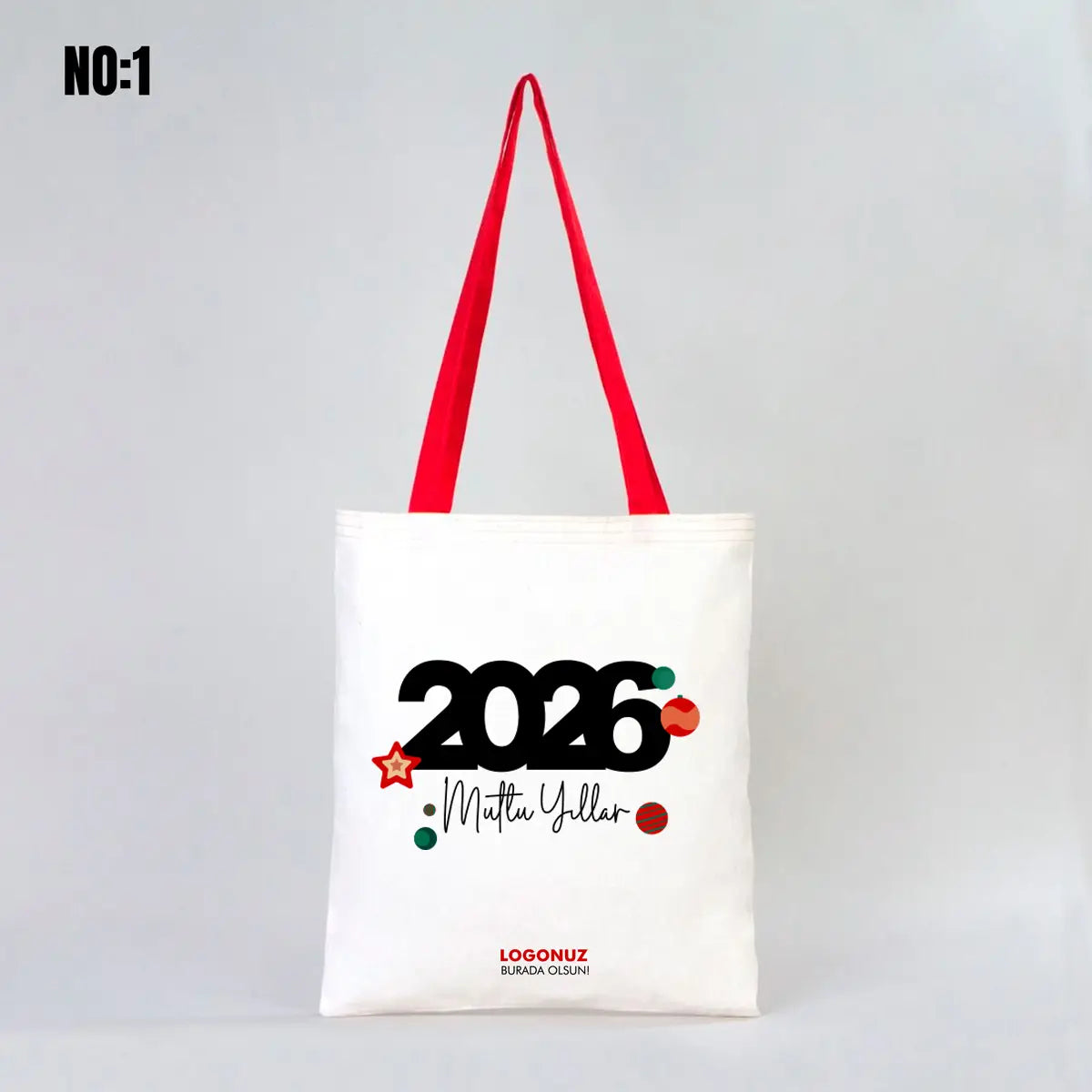 Yılbaşı Baskılı Renkli Kulp Ham Bez Çanta 35x40 cm (Özelleştirilebilir)