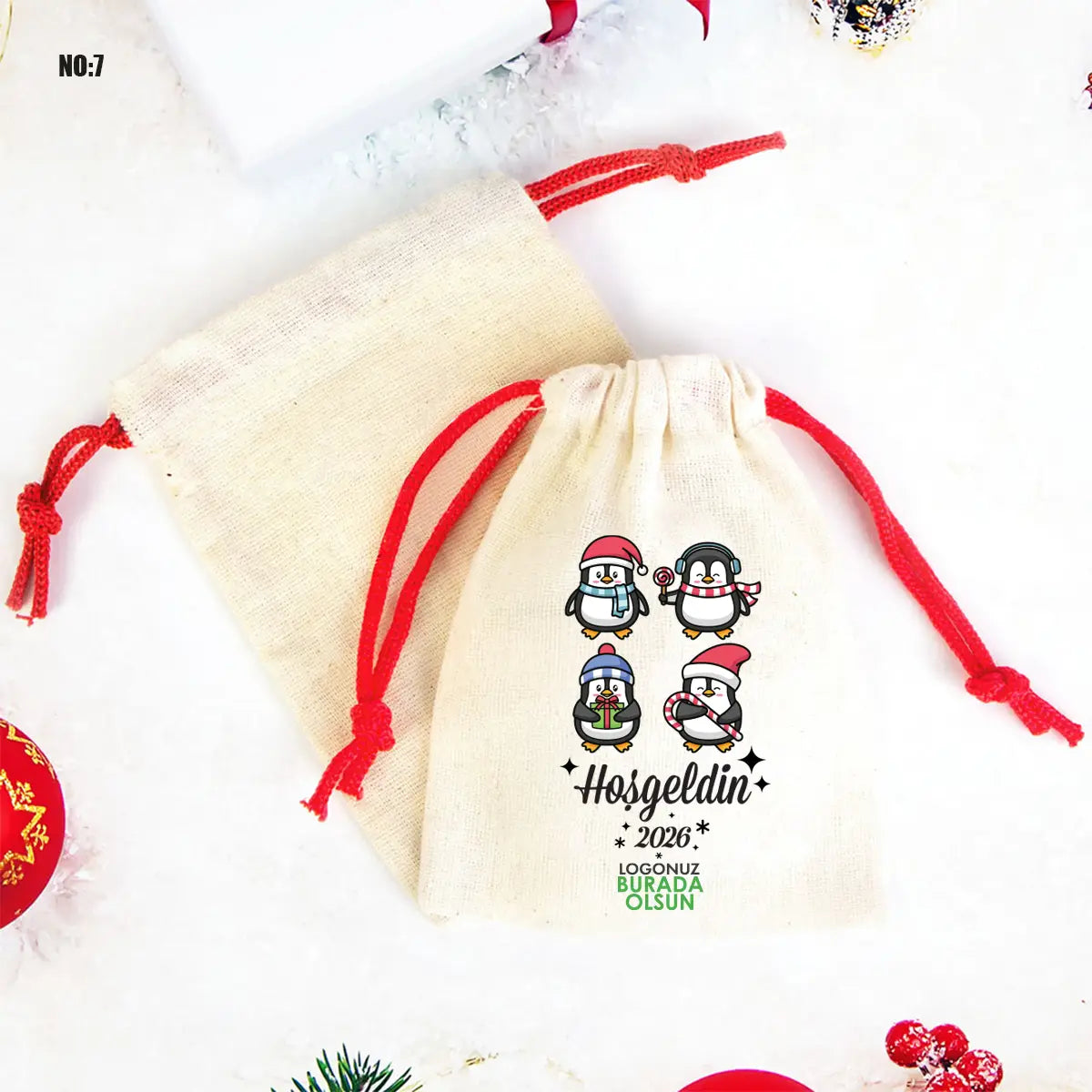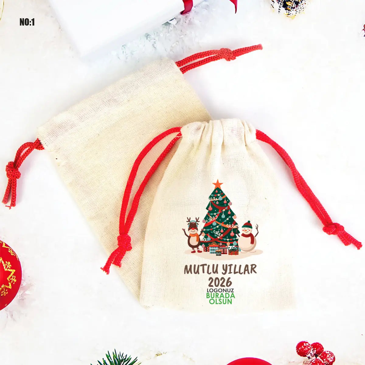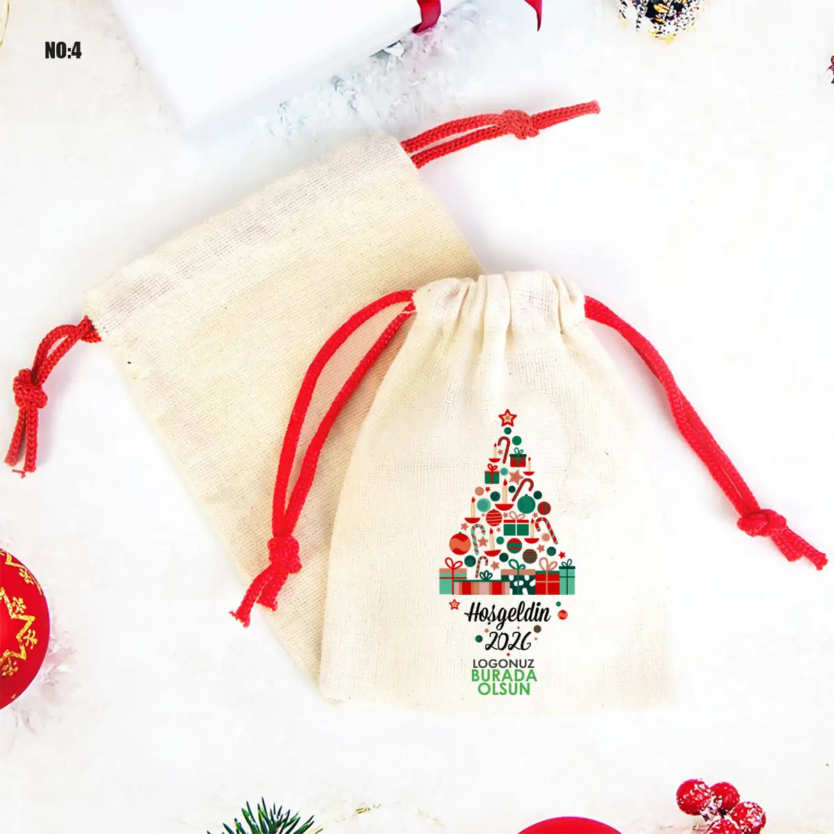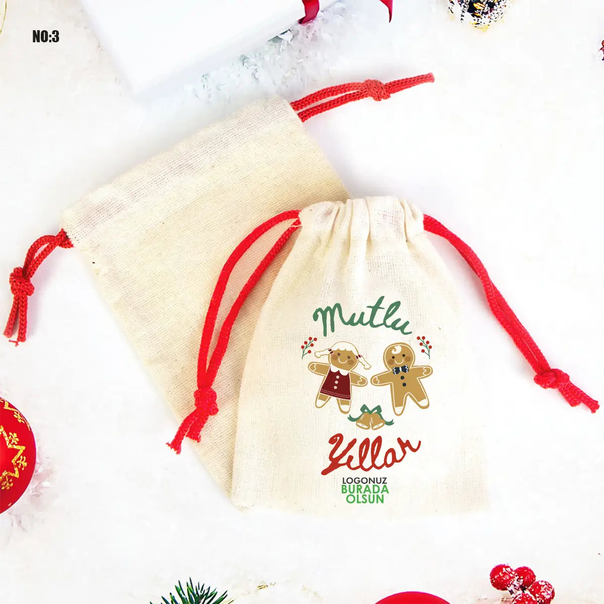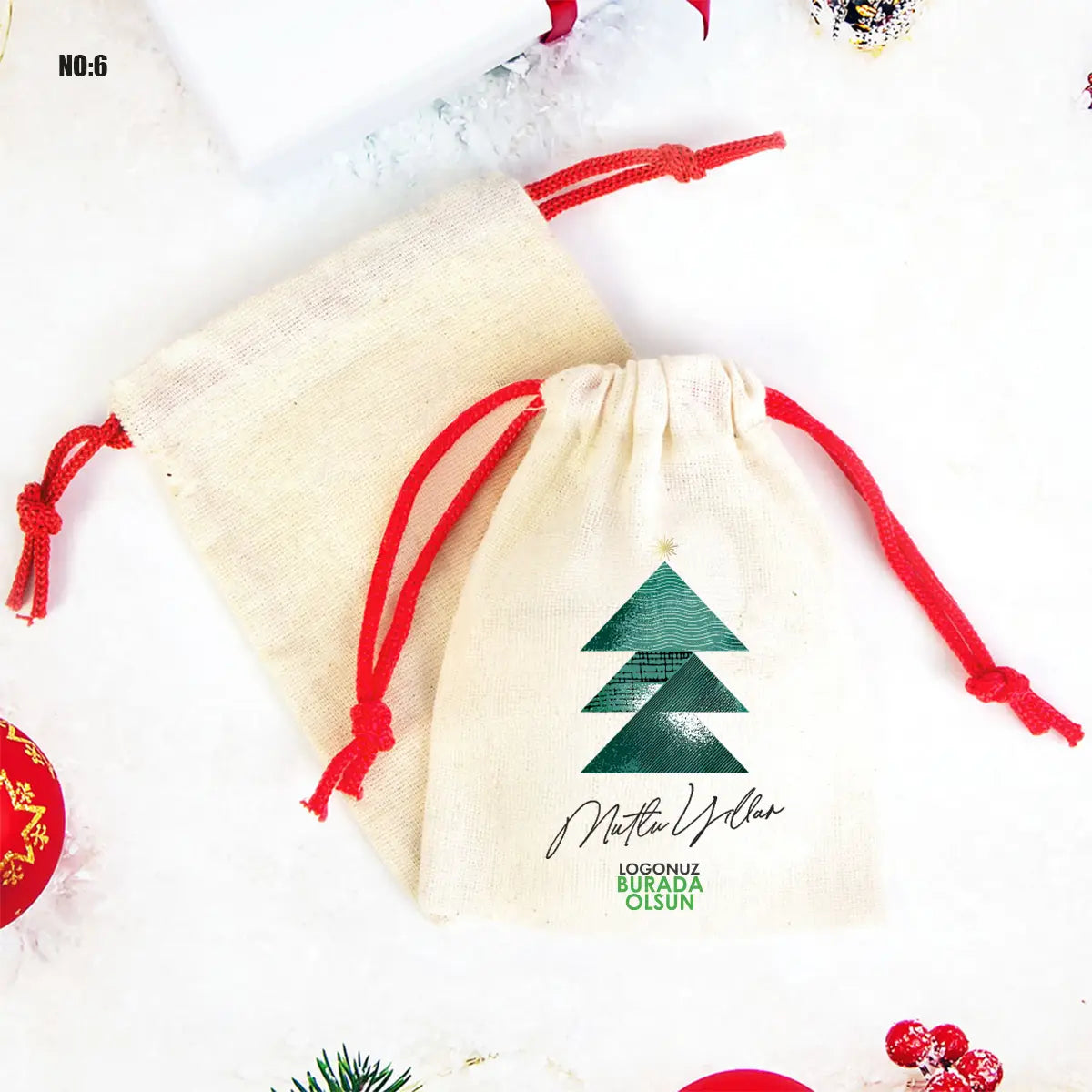 Yılbaşı Bez Kese 10x13 cm - Renkli İp - 10 renk seçenek (Özelleştirilebilir)
